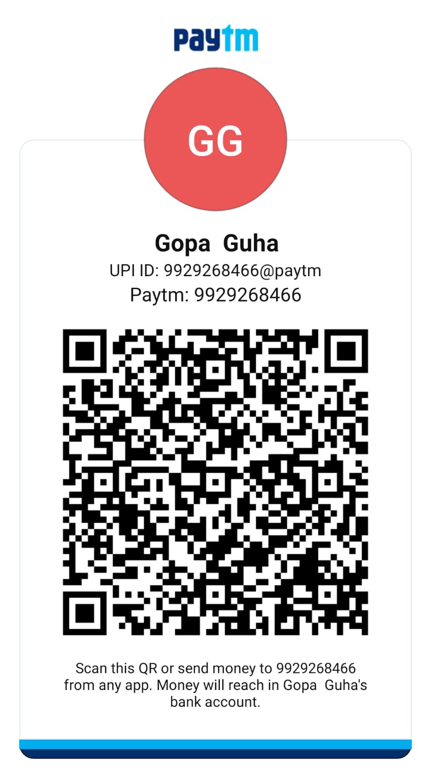 UPI Handle - 9929268466@paytm